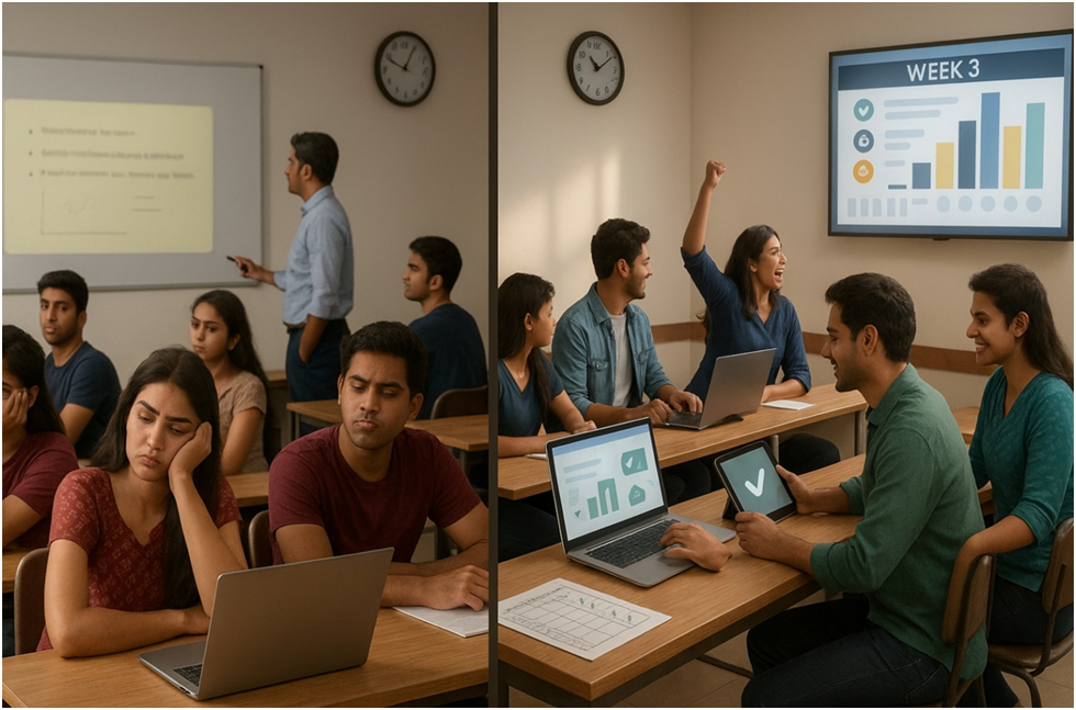 Two branches ran the same long lectures and static notes. Toppers were bored. Strugglers felt lost. Attendance slid after Week-2.