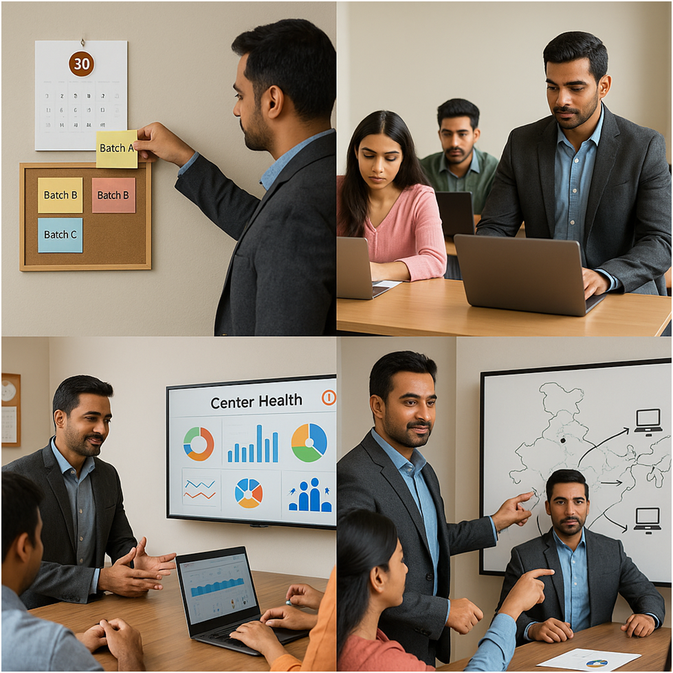 Add filters for center, program, faculty, and date range. Allow drill-downs from center to batch to learner. When you can see it in one glance, you can fix it in one meeting.