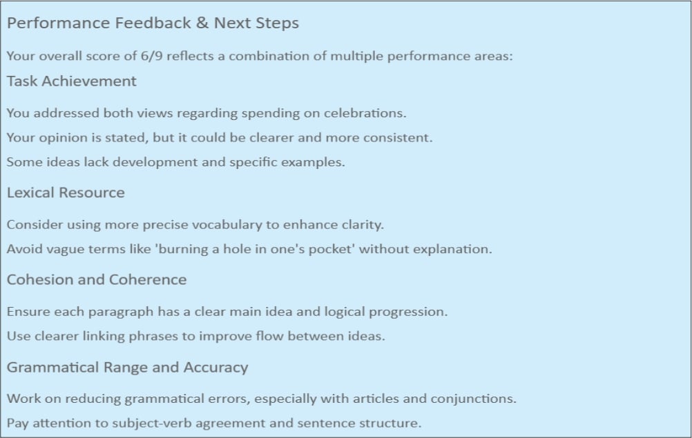 Academic discussions are now data-backed rather than subjective. Trainers can design targeted improvement plans more easily, and students better understand the exact factors influencing their band progression.